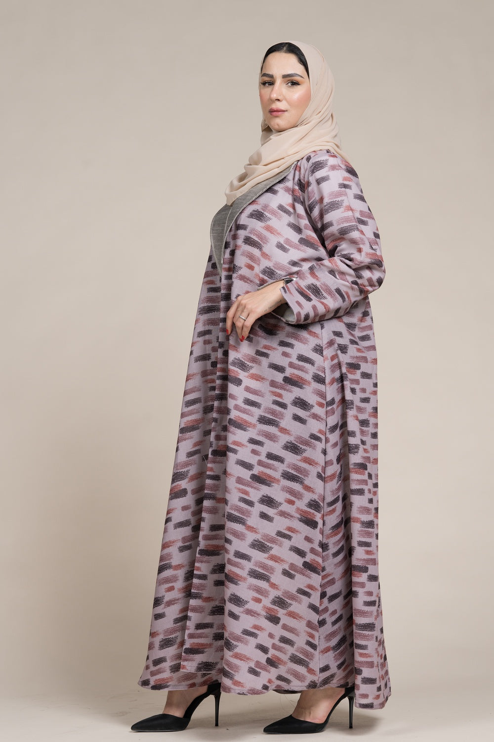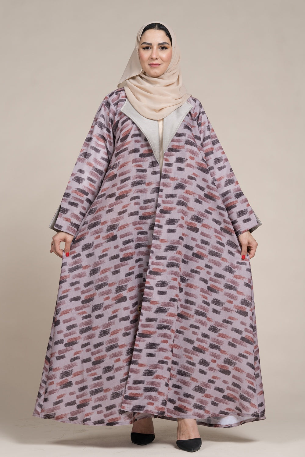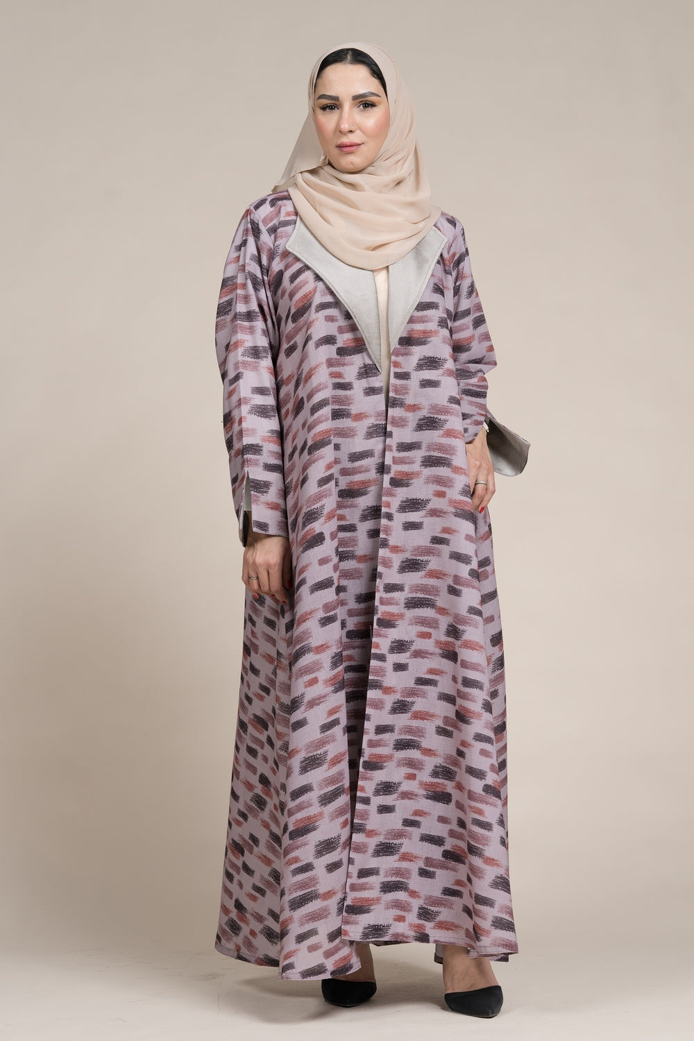 عباية جاكيت كتان لف زهري