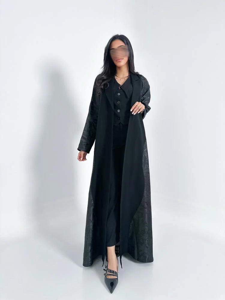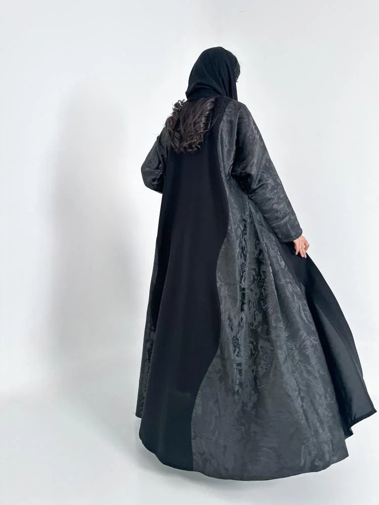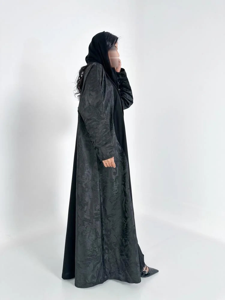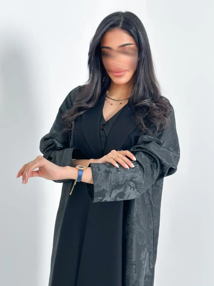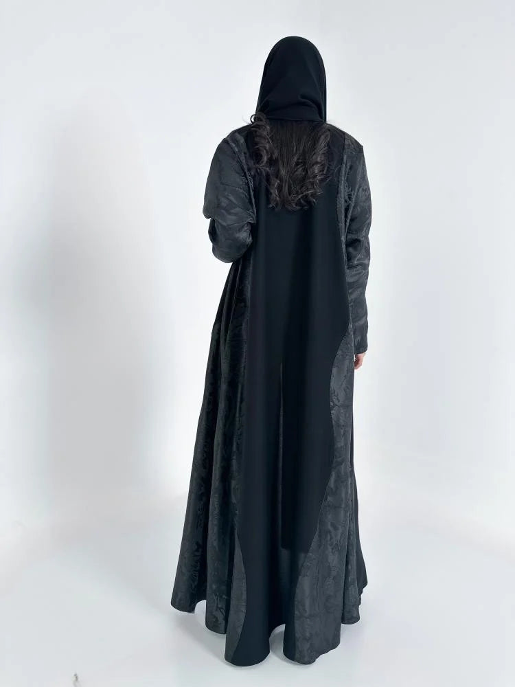 عباية كريب واقف مع جاكار اسود فرمادي كلوش
