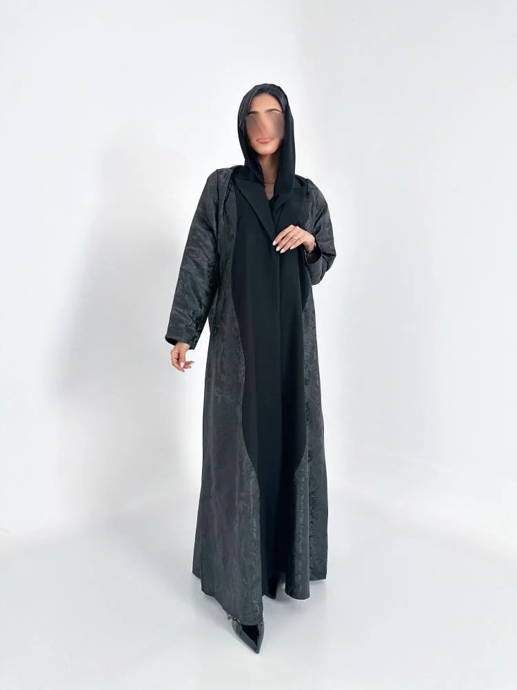 عباية كريب واقف مع جاكار اسود فرمادي كلوش - 1145