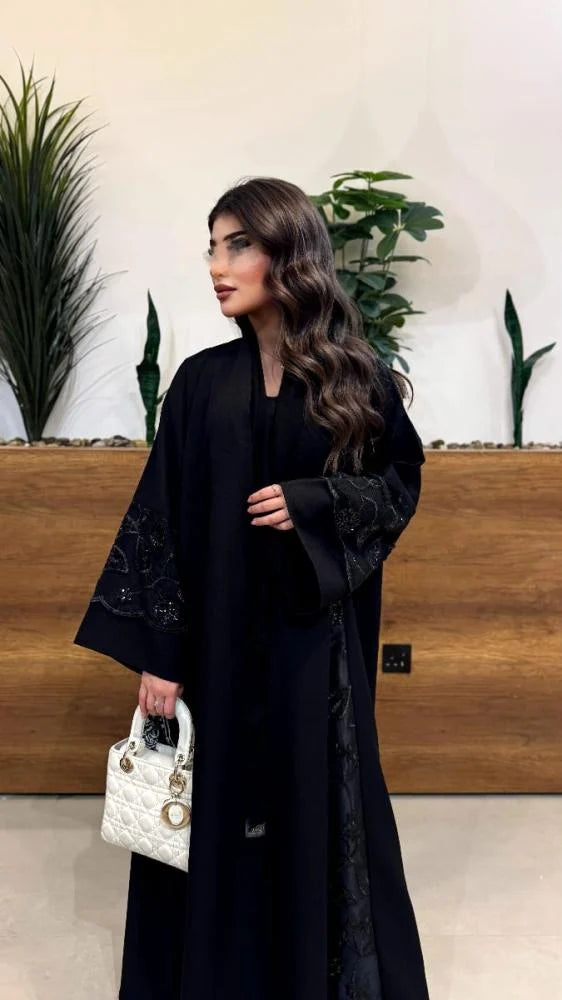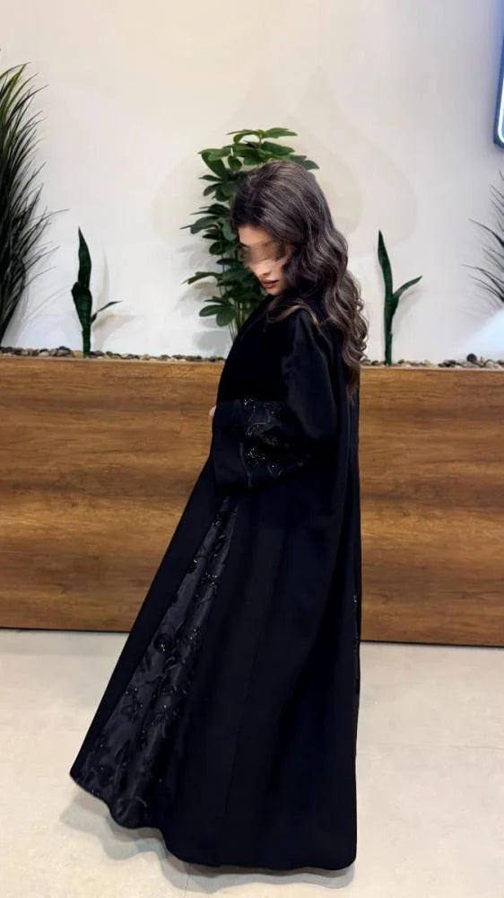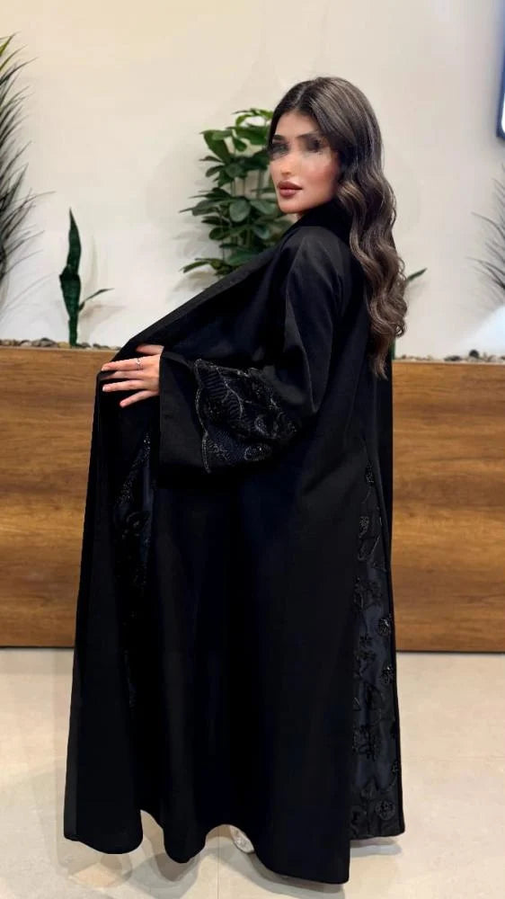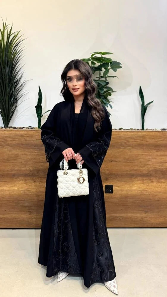 عبايه ايلين قماش كتان قماش المطرز دانتيل