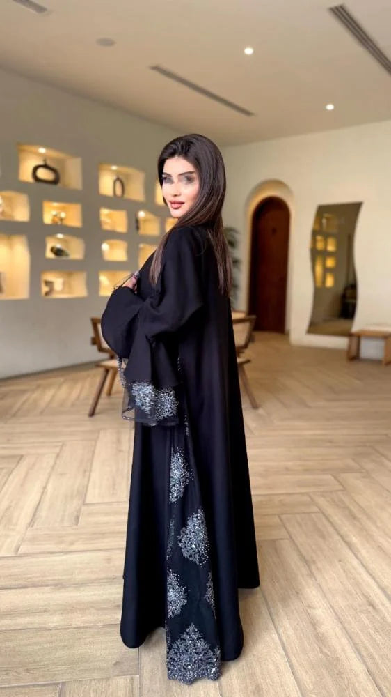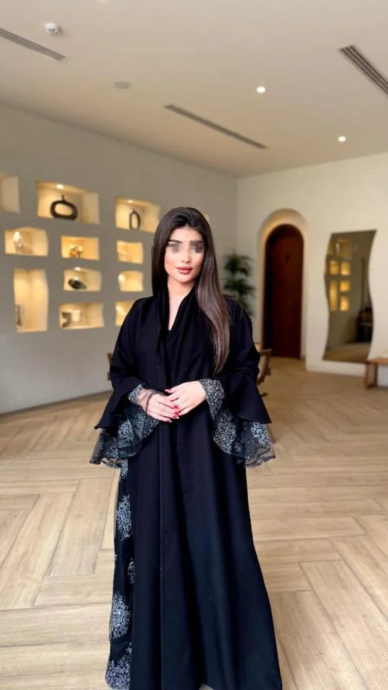 عبايه فوفو قصه نص كلوش قماش كتان مع اورجانزا